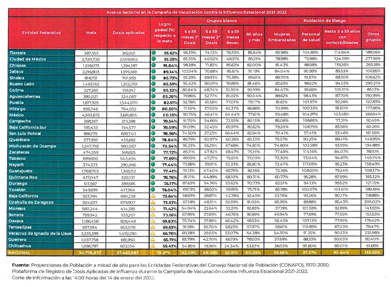 TLAXCALA OCUPA EL PRIMER LUGAR DEL PAÍS EN VACUNACIÓN CONTRA INFLUENZA