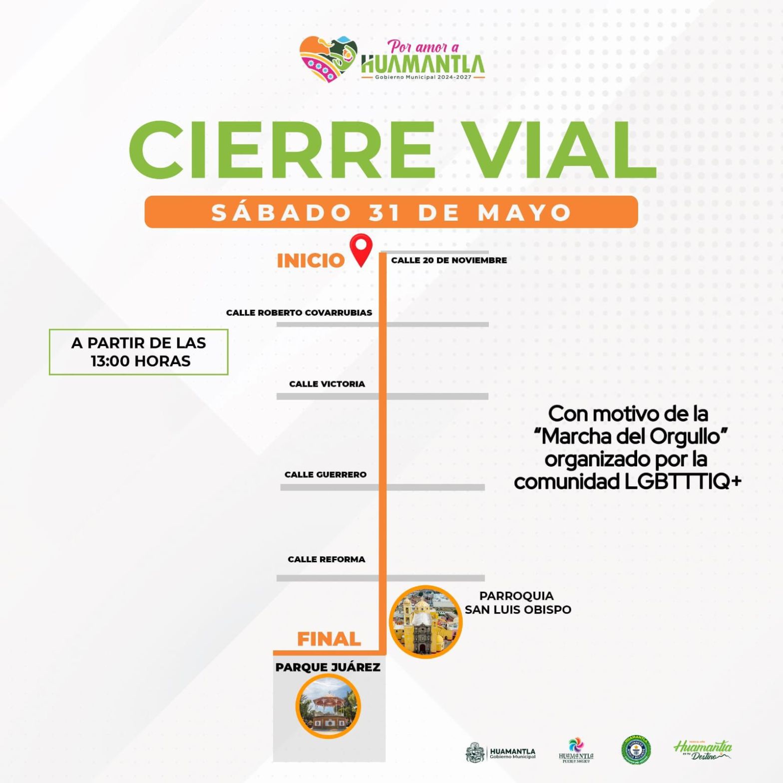 SEGURIDAD PÚBLICA INVITA A LA POBLACIÓN DE HUAMANTLA A TOMAR PREVISIONES ANTE CIERRES VIALES POR MARCHA DEL ORGULLO LGBTTTIQ+