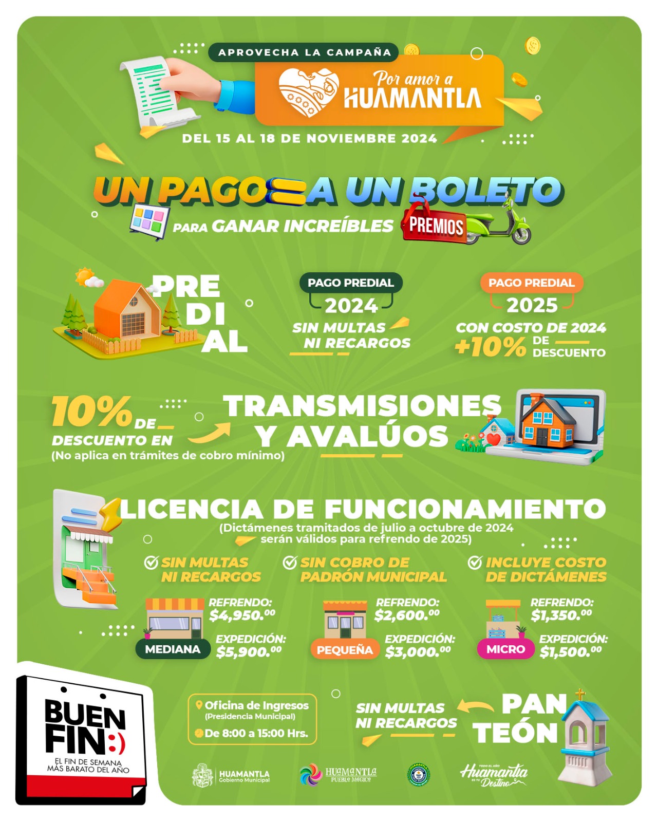 ANUNCIA AYUNTAMIENTO DE HUAMANTLA DESCUENTOS EN PAGO DE SERVICIOS POR “BUEN FIN”
