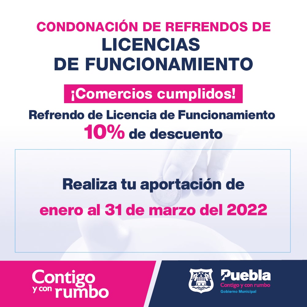 31 de enero, fecha límite para que negocios apliquen condonaciones del 50 al 100 por ciento en refrendos de Licencias de Funcionamiento._ Como parte de la estrategia denominada “Impulsa Puebla” del Ayuntamiento de Puebla, que encabeza Eduardo Rivera Pérez, Presidente Municipal, la Comisión de Desarrollo Económico y Turismo hizo un llamado a comercios a aprovecharSigue leyendo «📄📄APROVECHA ÚLTIMOS DÍAS DE CONDONACIÓN EN LICENCIAS DE FUNCIONAMIENTO»