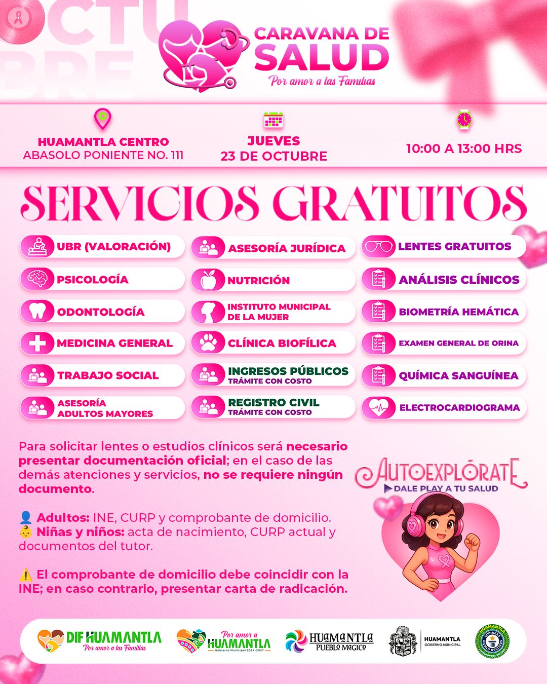 CARAVANA DE SALUD DEL DIF HUAMANTLA LLEGARÁ ESTE JUEVES A LA CALLE ABASOLO