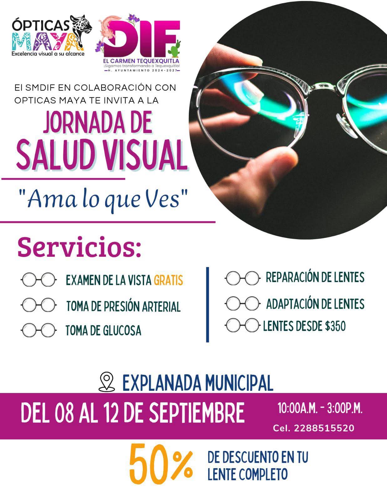 8 DE SEPTIEMBRE 2025 Jornada visual en la explanada Municipal, cuidar de tu salud visual es un tema de importancia.