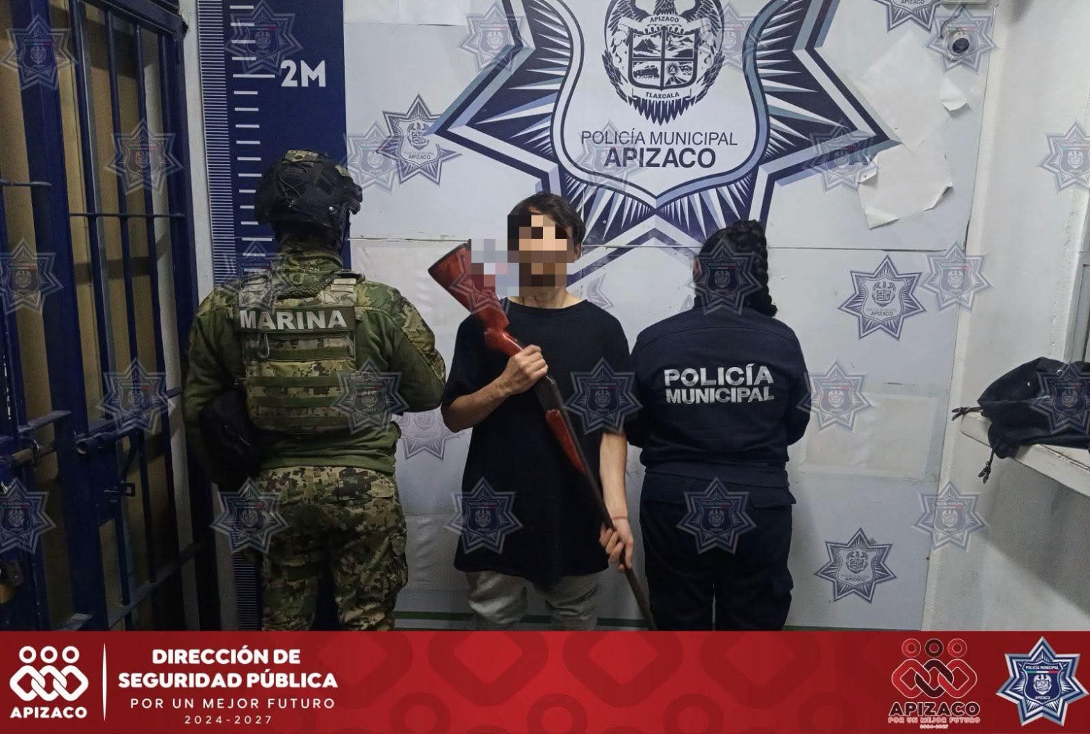 DETIENEN POLICÍA MUNICIPAL DE APIZACO Y MARINA A MASCULINO POR PORTACIÓN DE ARMA DE FUEGO