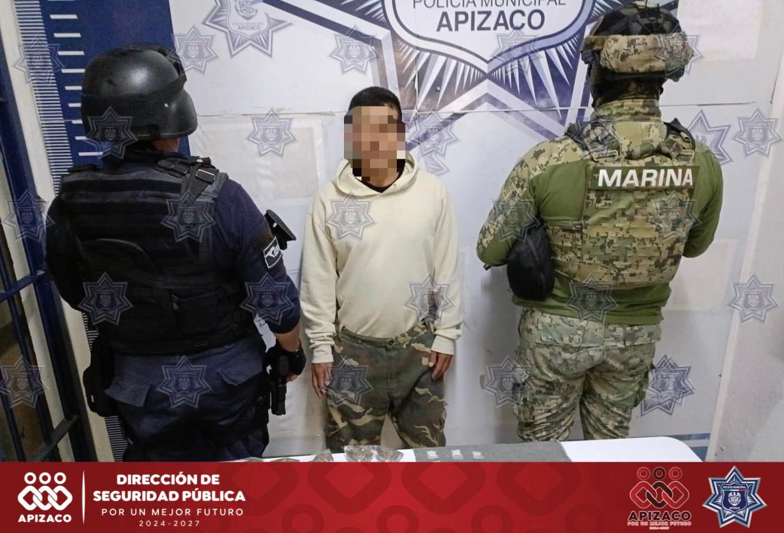 EFECTIVA ACCIÓN CONJUNTA DE POLICÍA DE APIZACO Y MARINA DETIENEN MASCULINO POR NARCOMENUDEO