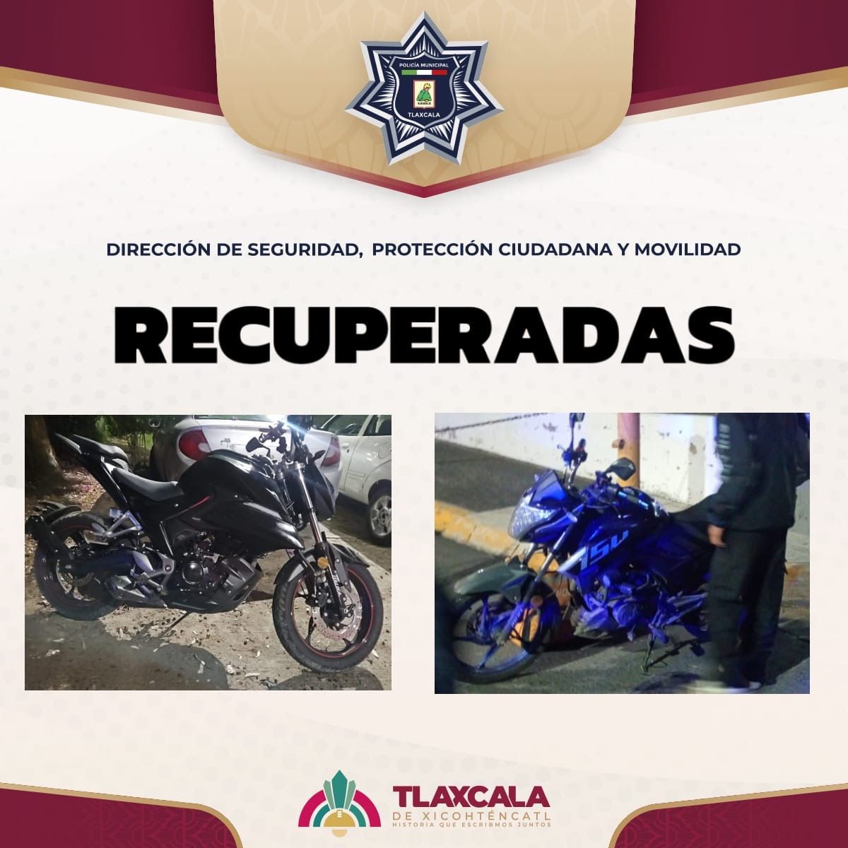 POLICÍA MUNICIPAL DE TLAXCALA ASEGURA DOS MOTOCICLETAS CON REPORTE DE ROBO