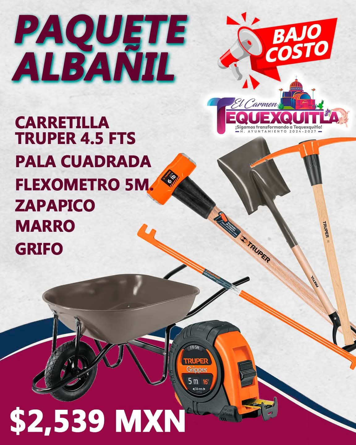 12 DE AGOSTO 2O25 💪 Apoyando a las familias trabajadoras de El Carmen TequexquitlaEl Gobierno Municipal pone a disposición paquetes de herramientas a bajo costo, ideales para labores de construcción, jardinería y mantenimiento, con el objetivo de facilitar el trabajo y cuidar la economía de nuestra gente. 🔨 Paquete Albañil — $2,539Incluye: carretilla triple deSigue leyendo «GOBIERNO DE TEQUEXQUITLA APOYA A FAMILIAS TRABAJADORAS»