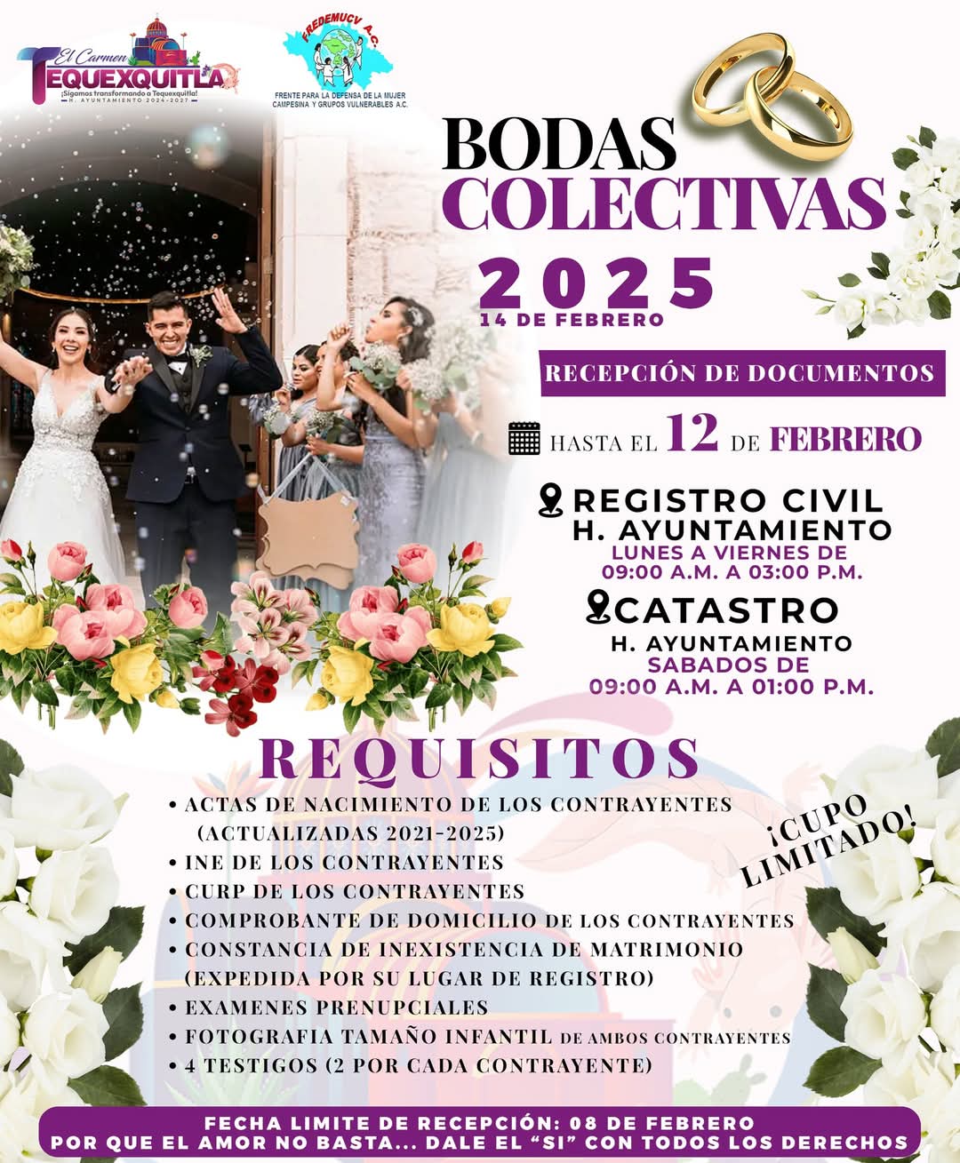 👰🏻♀️🤵🏻♂️💍‼️EN TEQIEXQUITLA BODAS COLECTIVAS 2025 ULTIMOS LUGARES‼️💍👰🏻♀️🤵🏻♂️