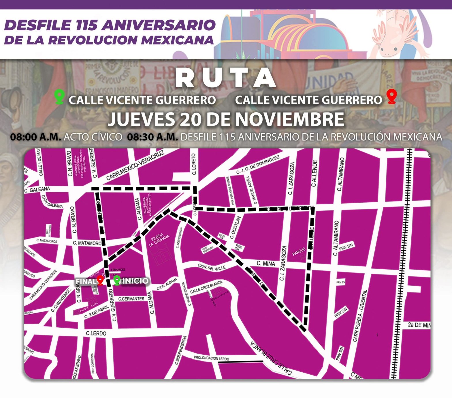 RUTA DEL DESFILE 20 DE NOVIEMBRE EN TEQUEXQUITLA