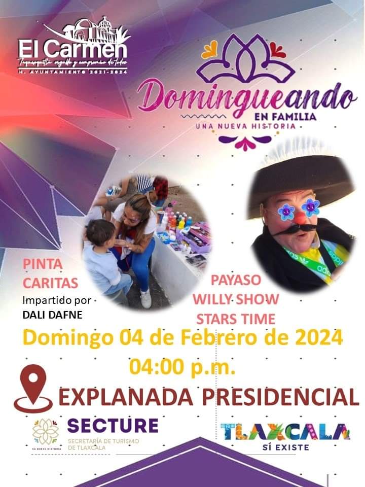 2 DE FEBRERO 2024 🟣✨ El Gobierno Municipal de El Carmen Tequexquitla te invita a su gran 👨👩👧 DOMINGUEANDO EN FAMILIA 👨👩👧 📅 04 de Febrero de 2024 a partir de las 4:00 p.m. 🕓 ¡NO FALTES! TequexquitlaOrgulloYCompromisoDeTodos GobiernodeResultados ElCambioSeVeySeVive