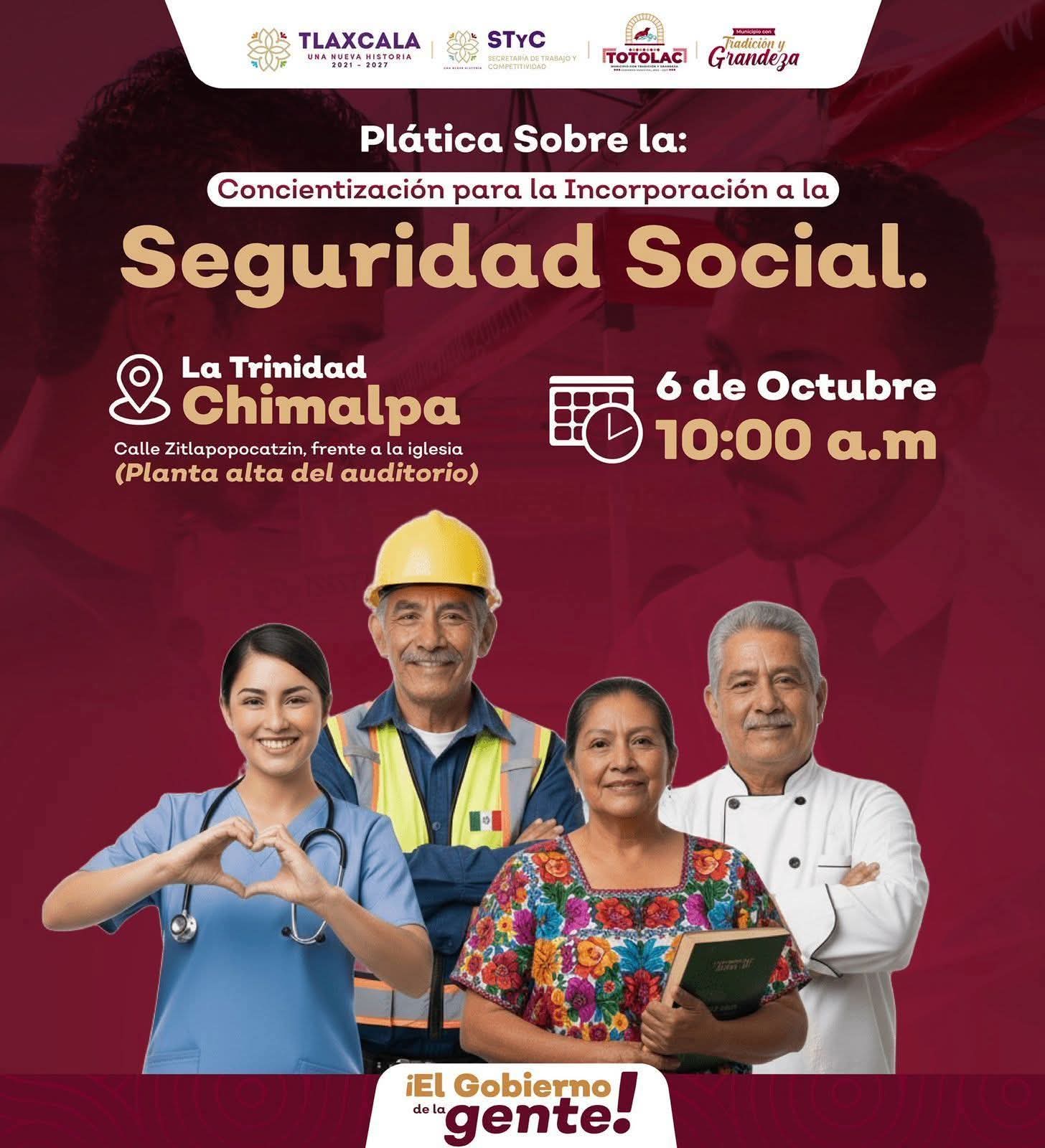 4 DE OCTUBRE 2025 El Gobierno del estado de Tlaxcala, a través de la Secretaría de Trabajo y Competitividad, en coordinación con el Gobierno Municipal de Totolac 24-27, llevará a cabo una plática sobre seguridad social, con el objetivo de informar, orientar y fortalecer los derechos laborales de las y los trabajadores. 👷🏼♀️Una iniciativa queSigue leyendo «ATENCION TOTOLAC ACUDE A PLATICA SOBRE SEGURIDAD SOCIAL»