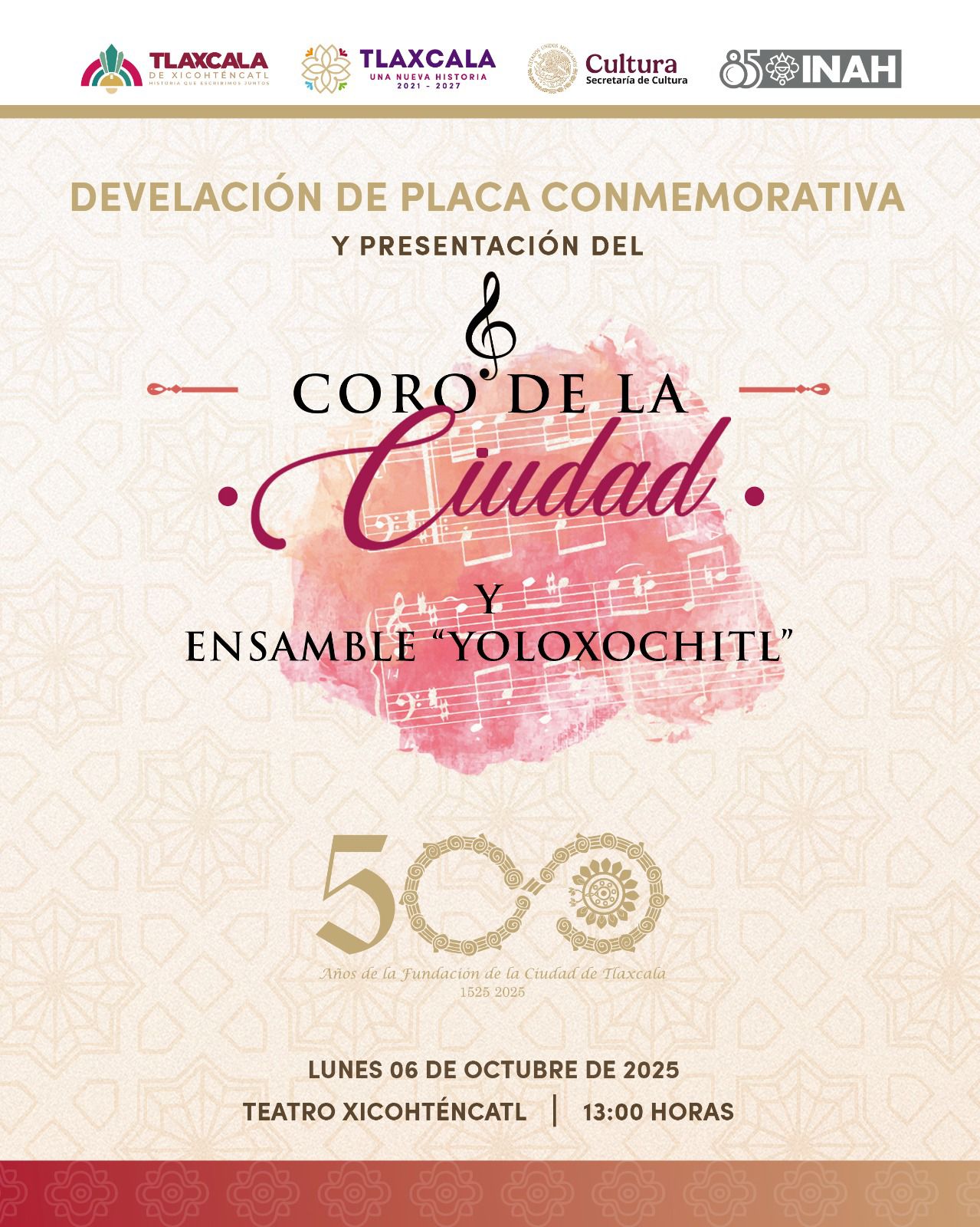 5 DE OCTUBRE 2025 El Gobierno Municipal de Tlaxcala, dirigido por Alfonso Sánchez García, continúa celebrando la historia y la identidad como parte de los festejos por los 500 años de la fundación de la Ciudad de Tlaxcala. Por ello, este lunes 6 de octubre se llevará a cabo la develación de la placa conmemorativaSigue leyendo «GOBIERNO DE LA CAPITAL CONTINÚA CON CELEBRACIÓN DE LOS 500 AÑOS DE LA FUNDACIÓN DE LA CIUDAD DE TLAXCALA CON DEVELACIÓN DE PLACA CONMEMORATIVA Y MÚSICA»