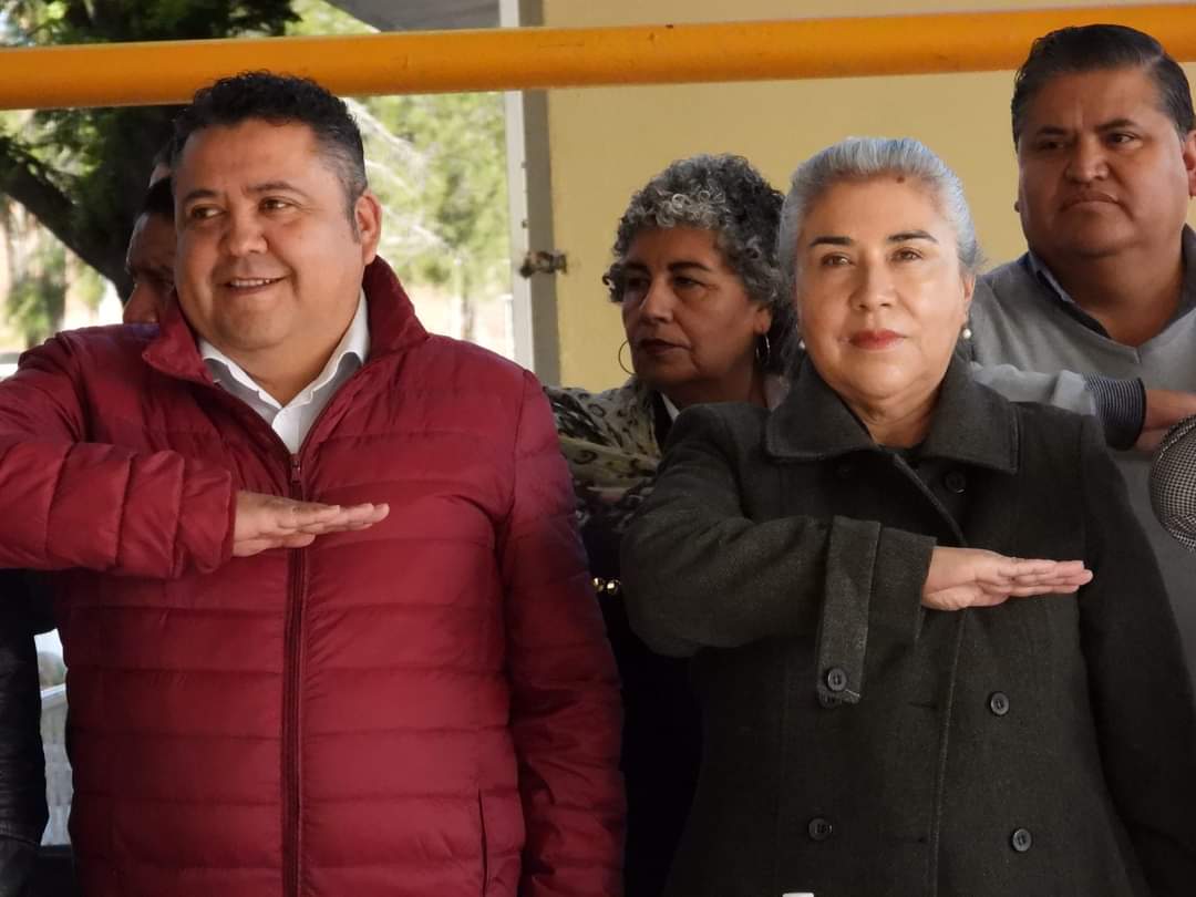 ACUDE ALCALDESA DE YAUHQUEMEHCAN A ACTO CÍVICO DE TELESECUNDARIA DE ATLIHUETZIAN