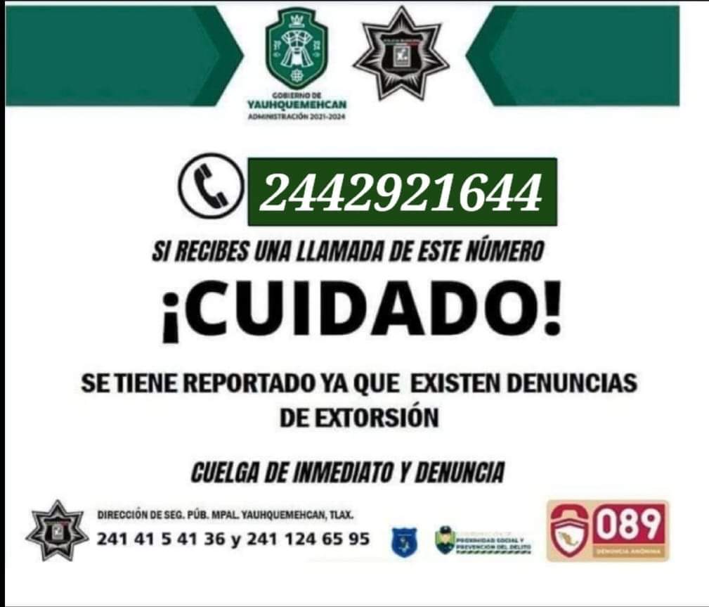 4 DE JULIO 2024 Seguridad | 🚨De acuerdo al registro de denuncias por extorsión, la Coordinación de Proximidad Social y Prevención del Delito te hace la siguiente recomendación. Si recibes una llamada de este número, ¡cuidado! Podrías ser victima de un acto de extorsión. En caso de recibir una llamada de extorsión, no des ningunaSigue leyendo «TEN CUIDADO CON LAS LLAMADAS DE EXTORSIÓN»